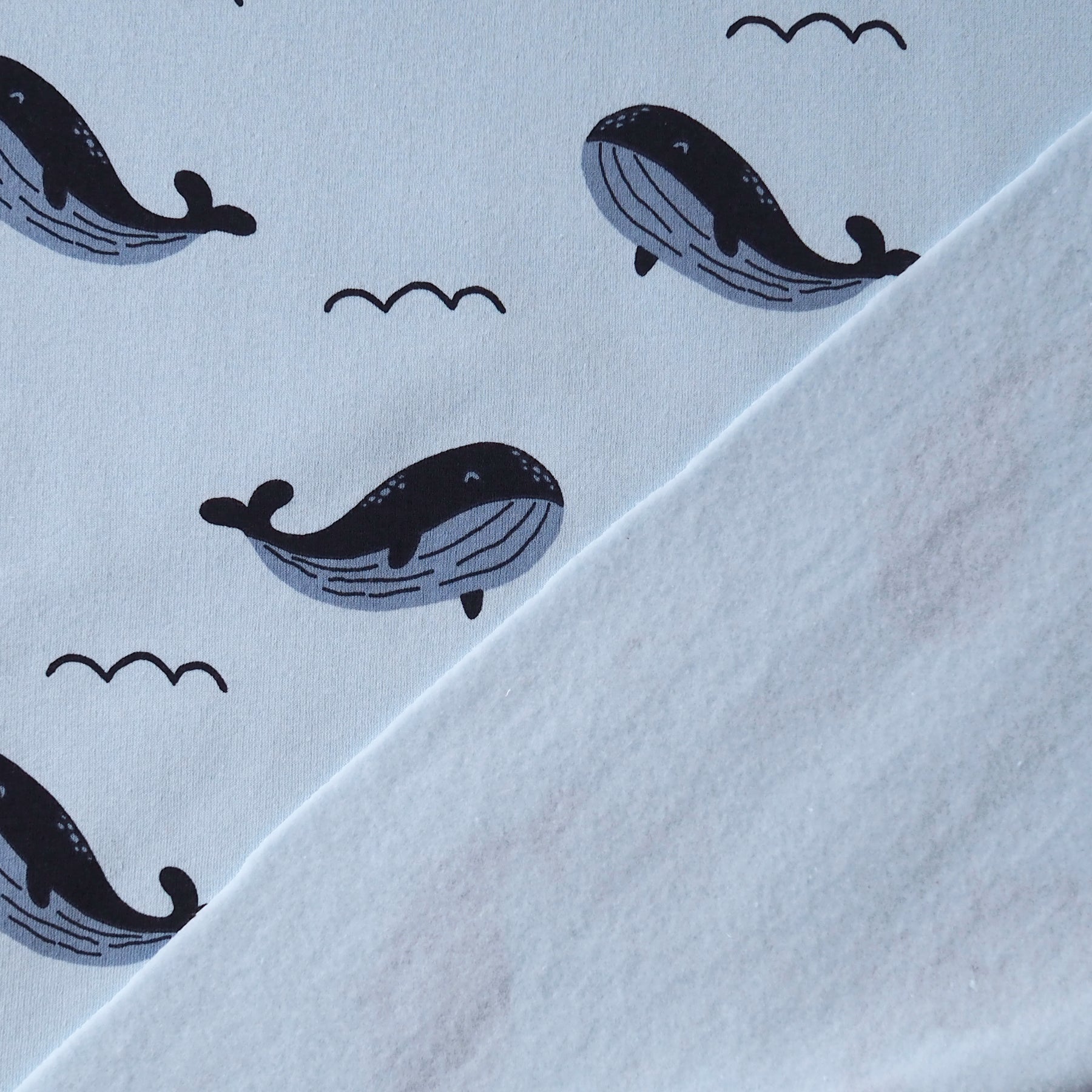 Whale Waves Fleeceback Sweatshirt Fabric
