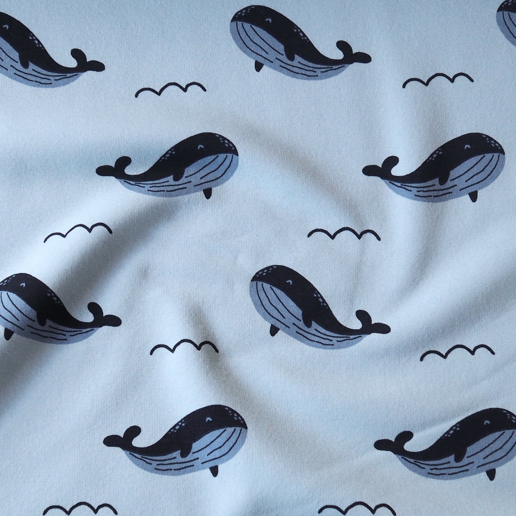 This Whale Waves Fleeceback Sweatshirt fabric is a cosy and soft knit fabric, perfect for sewing sweatshirts and comfortable childrenswear.