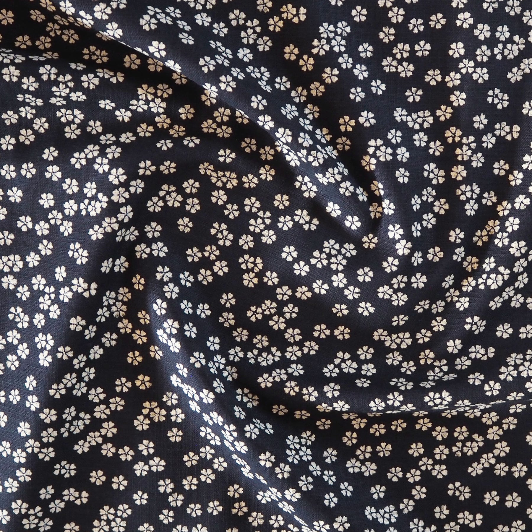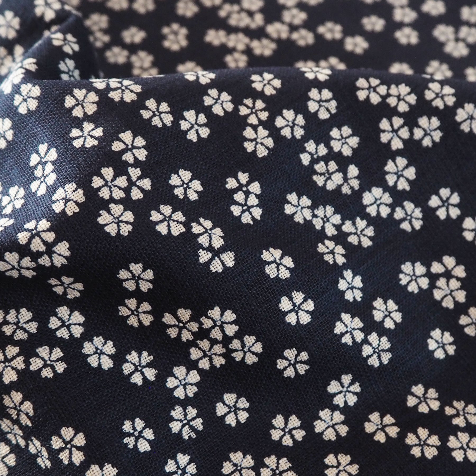 Sevenberry Little Flower On Indigo Cotton Fabric - Bolt End Piece 1.2m x 110cm